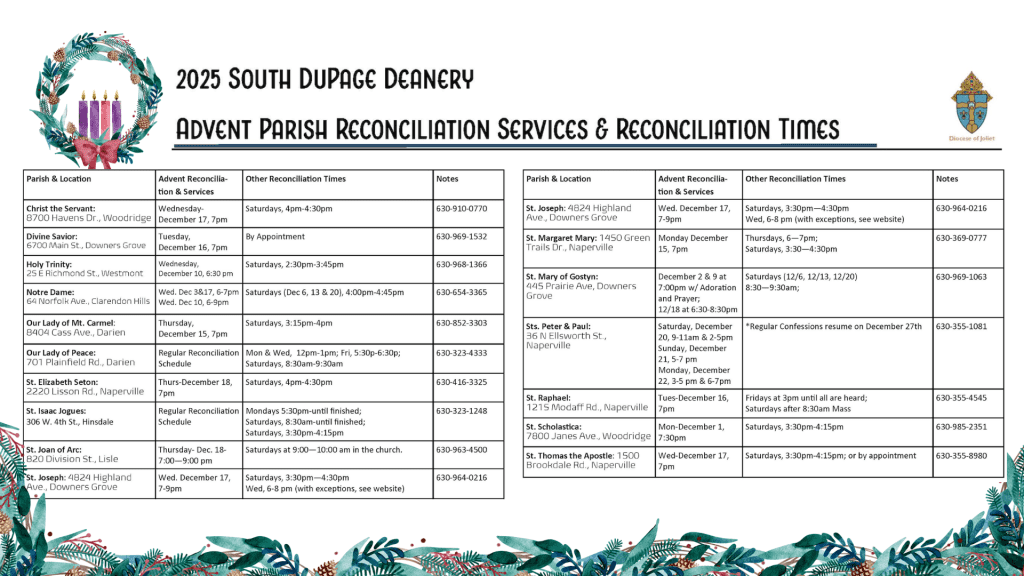 Angel Giving Program! Be an Angel to a Family In Need. Pick up a stocking after all Mass times on 11/23 & 11/24 and return it by Sunday, 12/8 filled with any of the suggested items to the bin by the Welcome Desk or to the Main Office. This year’s program benefits those individuals assisted by St. Vincent De Paul, Hesed House & Aurora Interfaith Food Pantry, and Waterleaf Women’s Center. Monetary donations can be made under the Angel Giving Fund via our online giving portal or via check made payable to Our Lady of Mercy with “Angel Giving” in the memo for tax purposes. Accepted thru 12/31. Please contact Lydia Schmitt, in the main office, with additional questions at lydias@olmercy or 331-707-5377.