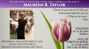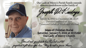 If you have experienced the death of a loved one, we, the pastoral staff at Our Lady of Mercy would like to express our sincere sympathies to you and your family. Our Catholic faith teaches us, through the resurrection of Jesus, to mourn with great hope. Still, grieving the death of a loved one is a traumatic experience that takes time and must be fully processed. When we grieve, no one can understand the depth of our loss, but please know that you are not alone. We are here to help you prepare for the next few days leading up to the funeral liturgy, as well as support you as your mourn in the weeks and months ahead.