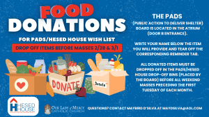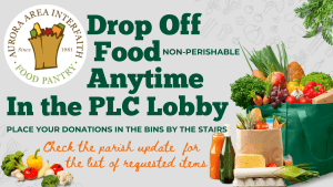 Bring non-perishable food to the Parish Life Center bins anytime.