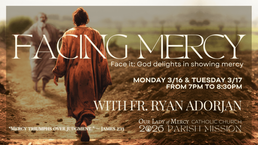 - March 16 – EDGE Night – Parish Mission “Facing Mercy” with Fr. Ryan