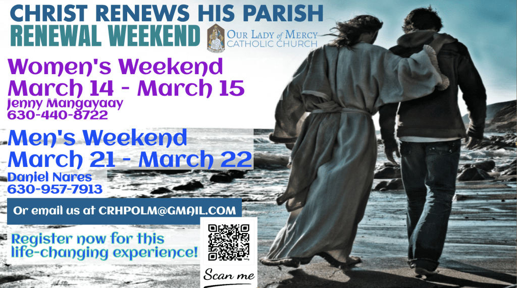 Christ Renews His Parish, or CRHP, is a program designed to help us renew our Christian faith by bringing members of the Our Lady of Mercy community together in Christ.