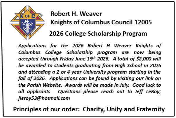 You can join for free between now and the end of the year. It will only take 30 minutes of your time and you can become part of the largest Catholic Men’s service organization in the world. We need you! For information reach out to Robert Pellegrini, Grand Knight, at rpellegr@aol.com or call 630-640-5846.
