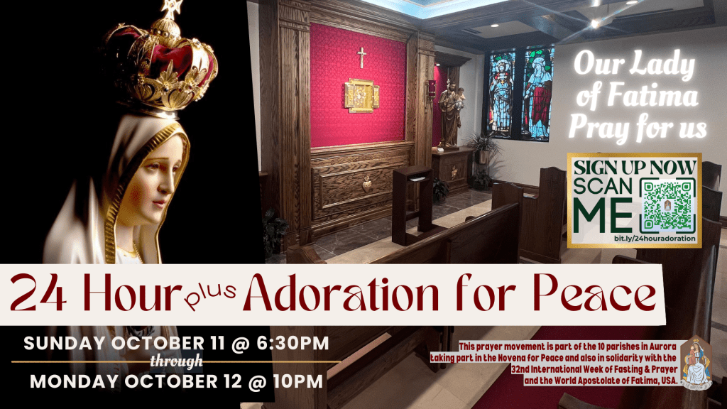 Your prayer matters. 🙏 In union with other Aurora parishes, we’ll also be part of the 33rd International Week of Fasting & Prayer and the World Apostolate of Fatima, USA—a global plea for peace.