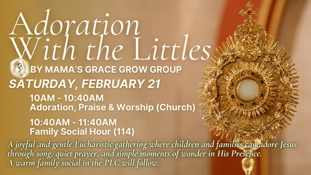 During this Lenten season, families are warmly invited to slow down and turn their hearts toward Jesus in a joyful, gentle way at Adoration With the Littles, hosted by Mama’s Grace Grow Group. This special gathering is especially welcoming to families with young children, offering simple songs, quiet prayer, and child-friendly moments of wonder before Jesus truly present in the Eucharist.
