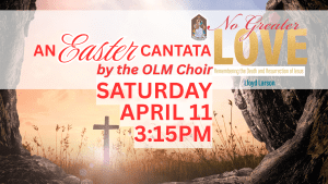 You’re invited to celebrate the joy and power of Easter through a beautiful musical experience presented by the OLM Choir: “No Greater Love: Remembering the Death and Resurrection of Jesus” by Lloyd Larson.