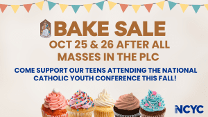 Come support our teens attending the National Catholic Youth Conference by stopping by their Bake Sale in the PLC after all masses.