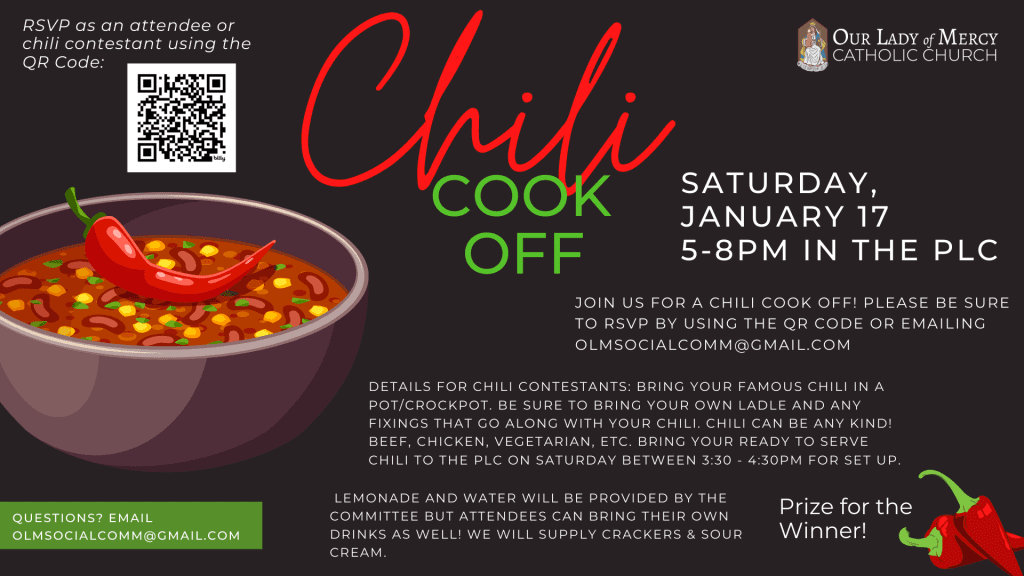 Join us for a chili cook off! Please be sure to RSVP by using the link below or emailing olmsocialcomm@gmail.com