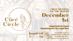 📅 The Curé Circle meets every first Monday of the month. Come and be part of this prayerful movement of intercession.
