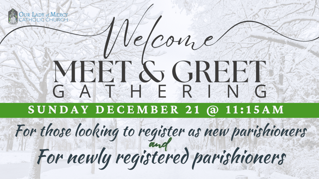 New to Our Lady of Mercy? Come to Our Welcome Meet & Greet on Sunday, December 21 at 11:15am in Room 114.