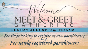 Whether you’ve recently registered as a member (parishioner) or if you’ve been attending our Sunday or Daily Mass & actively participating in community life, we encourage you to make it official and become a member/parishioner at the Meet & Greet—we’ll be ready to assist with registrations! Join us at 11:15am on Sunday, August 31st!